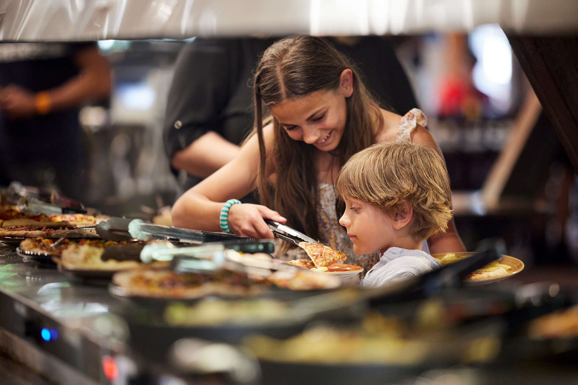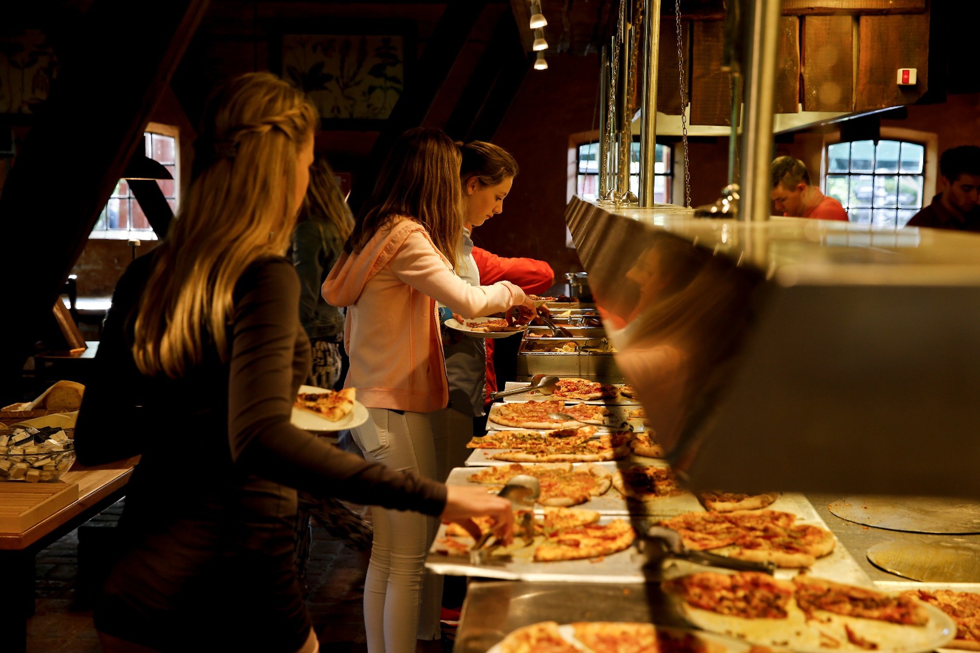 Her tilbydes Fårups lækre italienske pizzabuffet inkl. sodavand, saft eller øl med livretter for både børn og voksne.