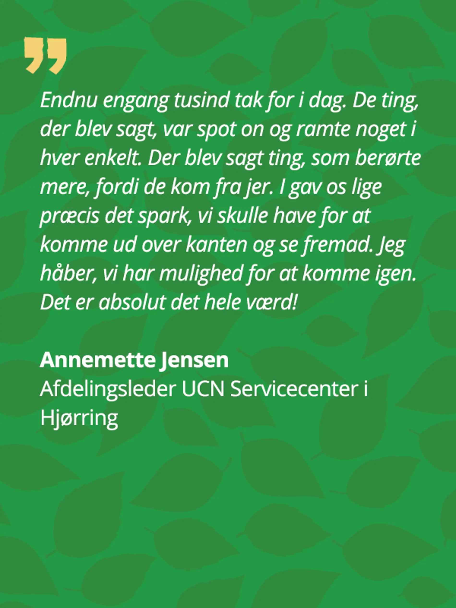 Vores mission er at inspirere og udvikle ledere og medarbejdere i danske og internationale virksomheder, til at skabe endnu større engagement på medarbejderteamet – og endnu større gæste- og kundetilfredshed. Sidegevinsten er en endnu bedre forretning, fordi meget tilfredse medarbejdere gør sig umage i de daglige – mens meget tilfredse gæster og kunder kommer igen og tager venner og familie med.