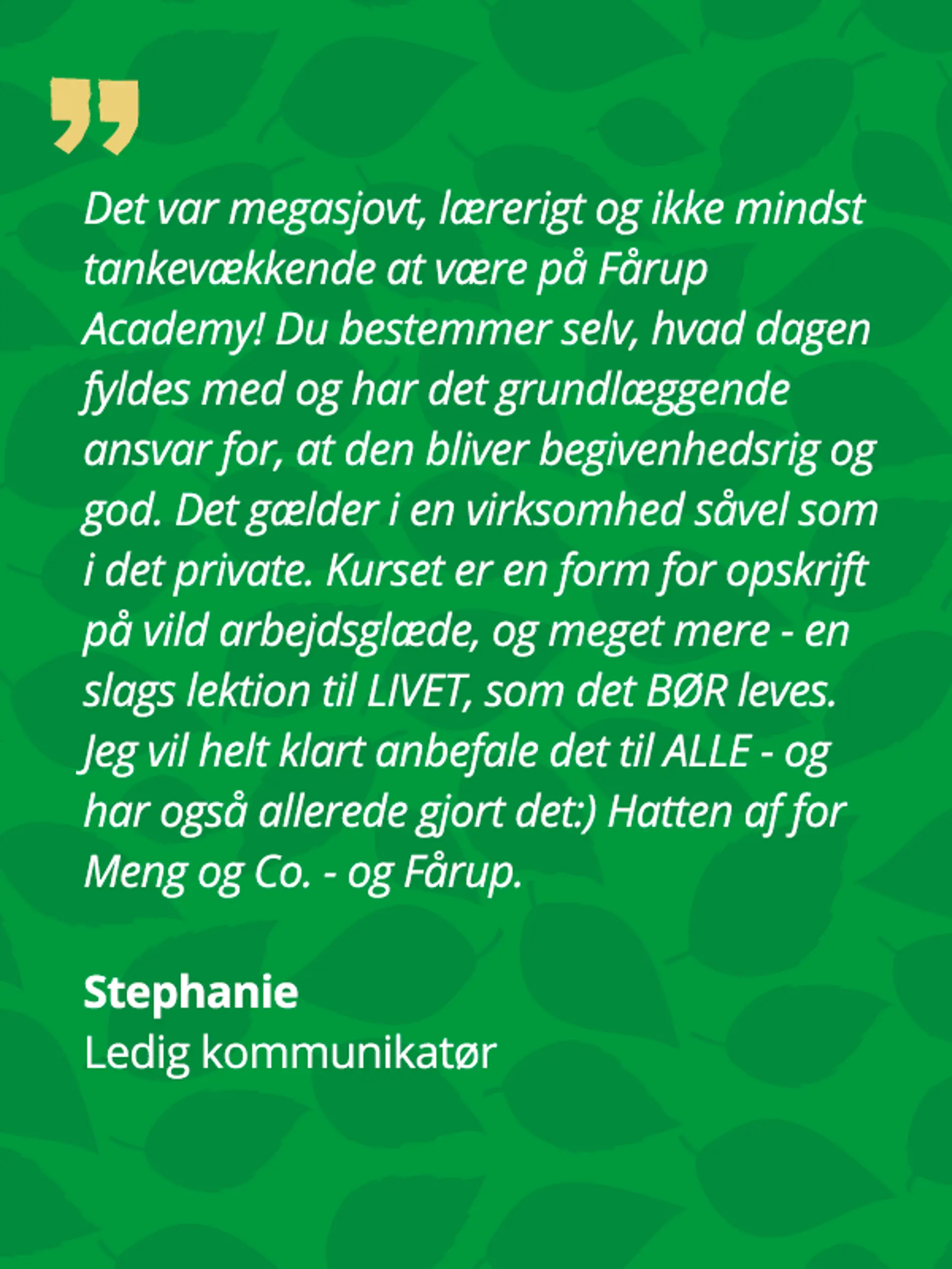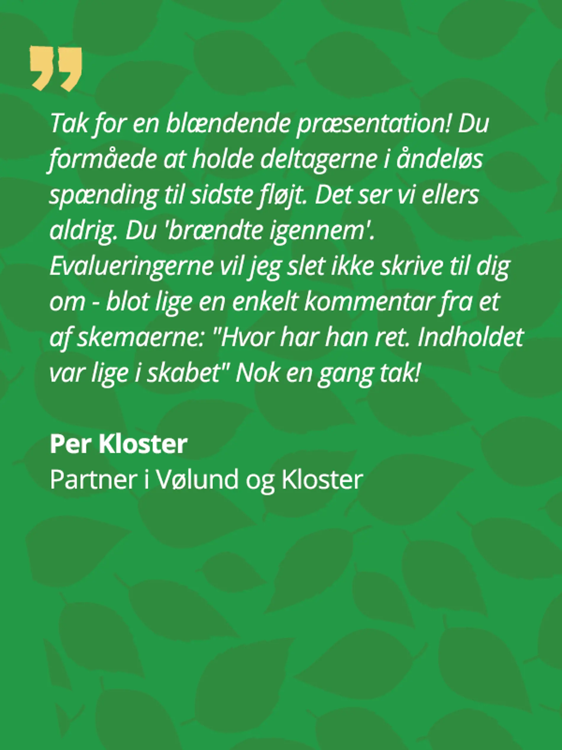 4000+ deltagere gennem årene fortæller os at det virker, når man bruger det, man lærer her undervejs!