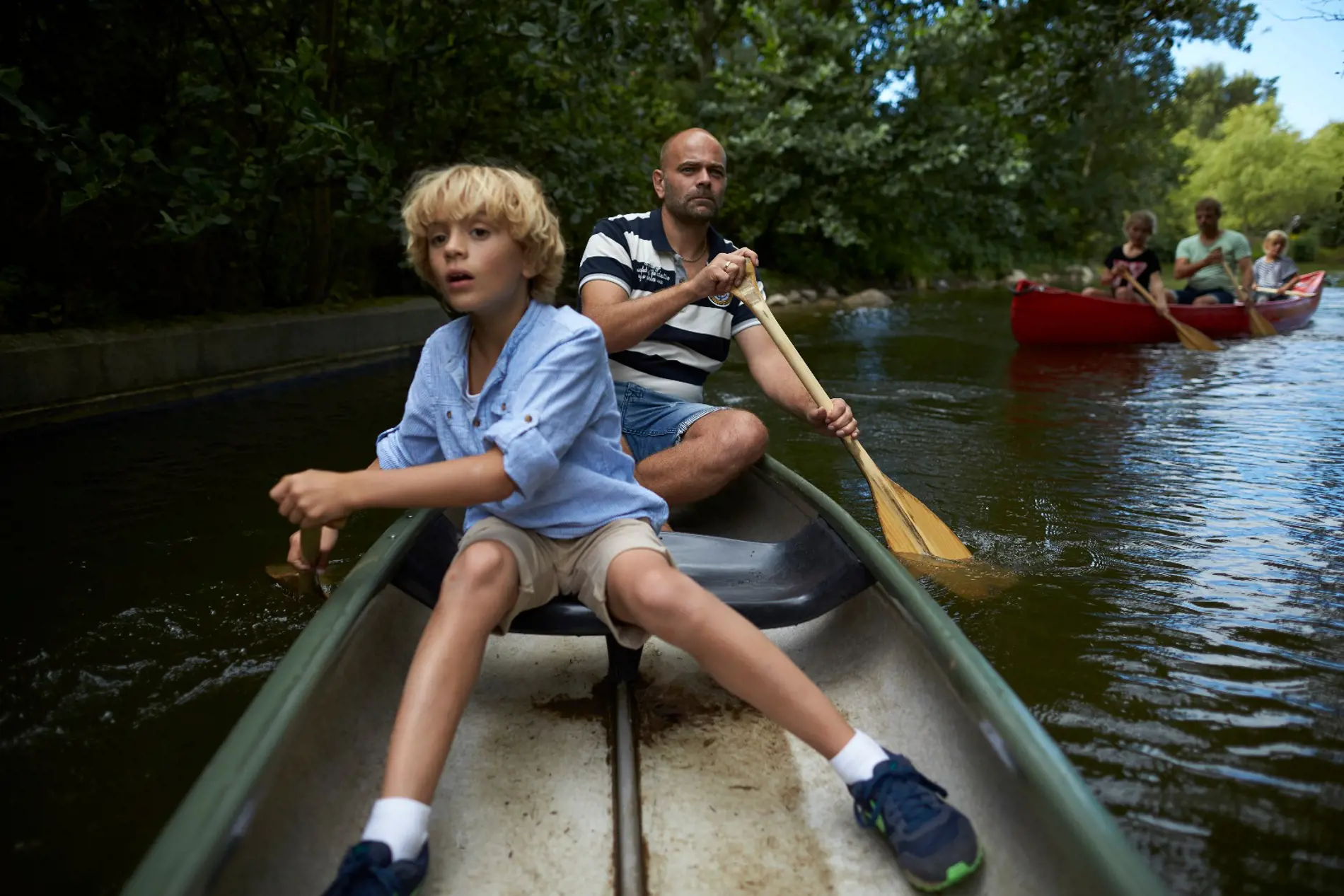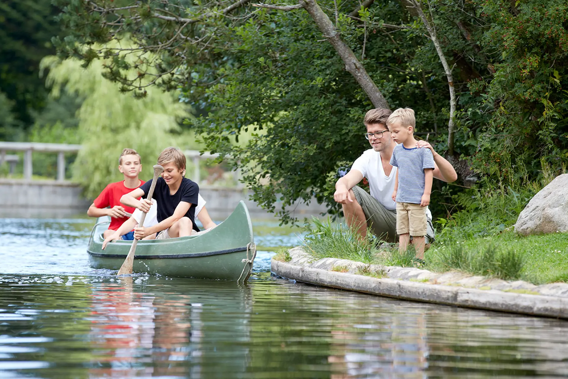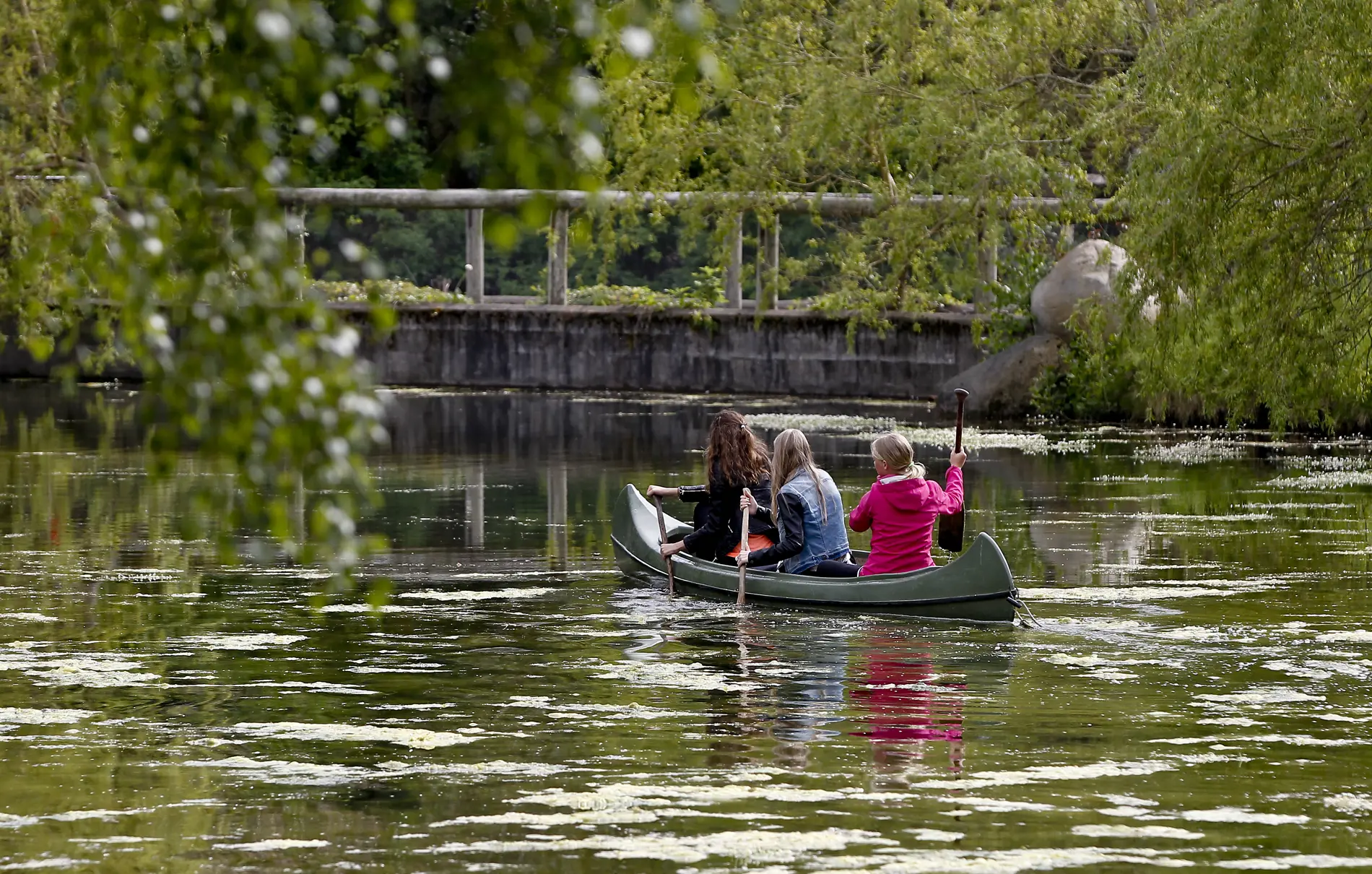 Kanoerne ligger i en hyggelig sø med to små øer, en masse fine åkander og søde rappende ænder. Det er den ideelle udflugtsmulighed for hele familien, men det kræver både balance og teknik at sejle i en kano, og det kan være noget af en udfordring at holde den på rette kurs.