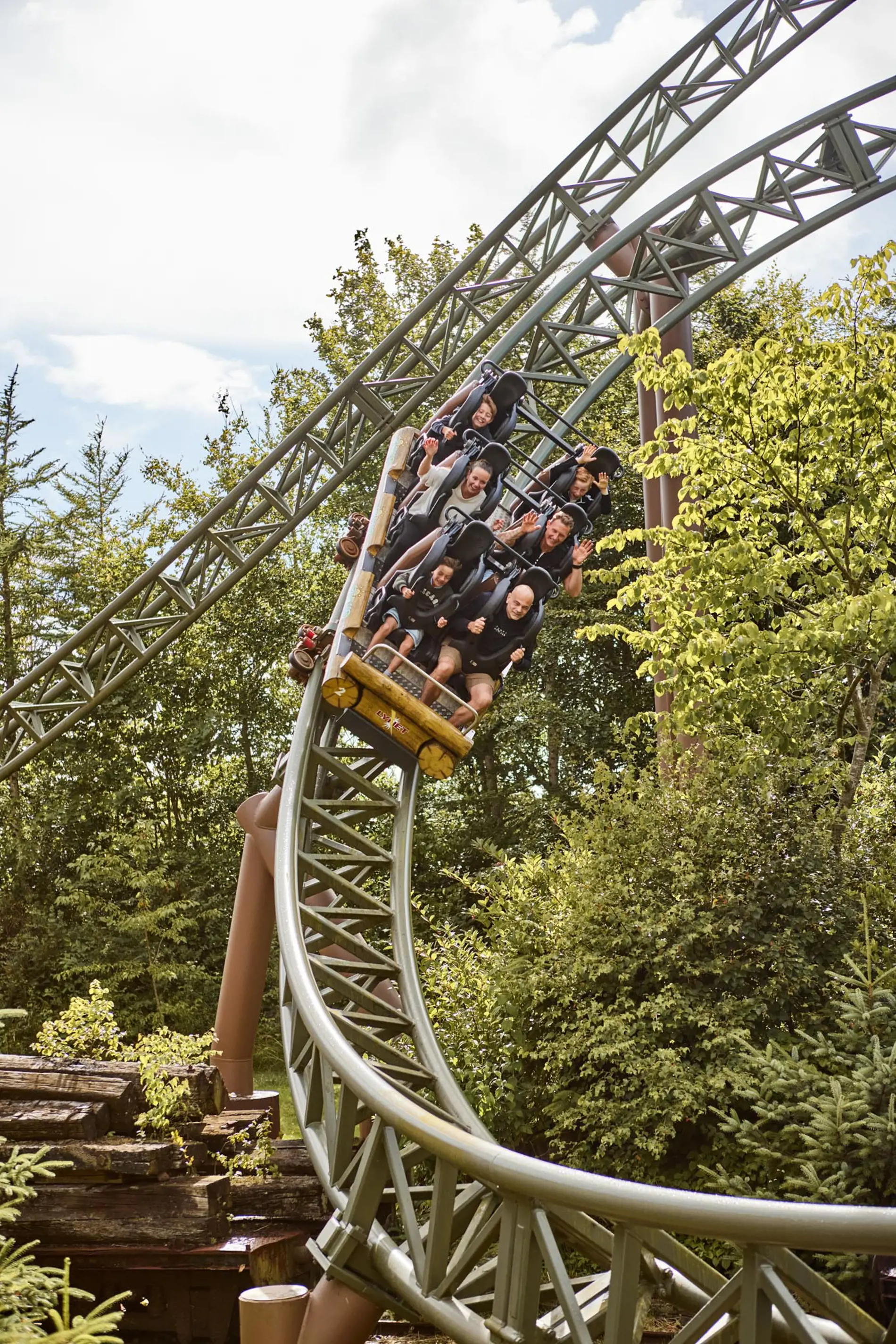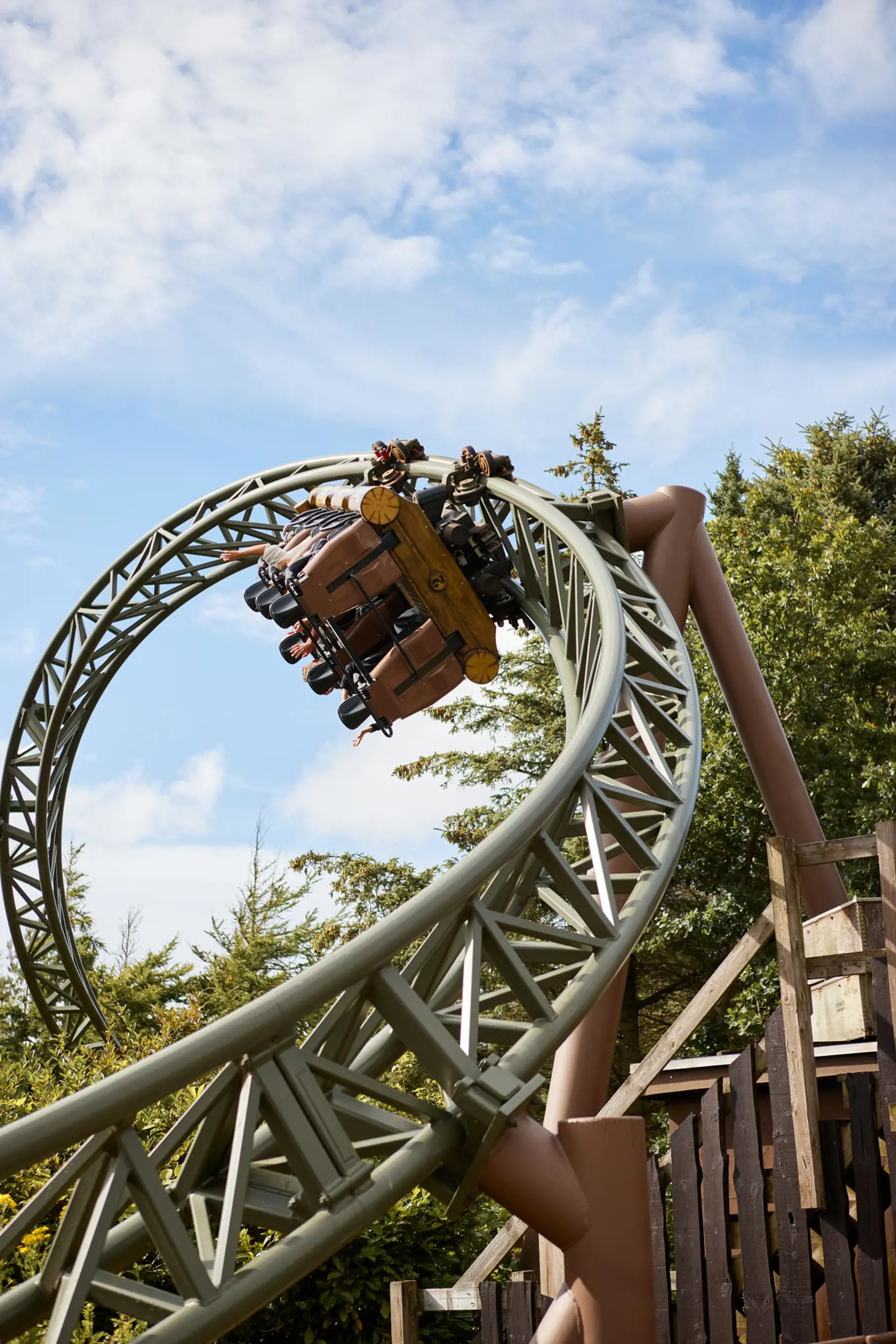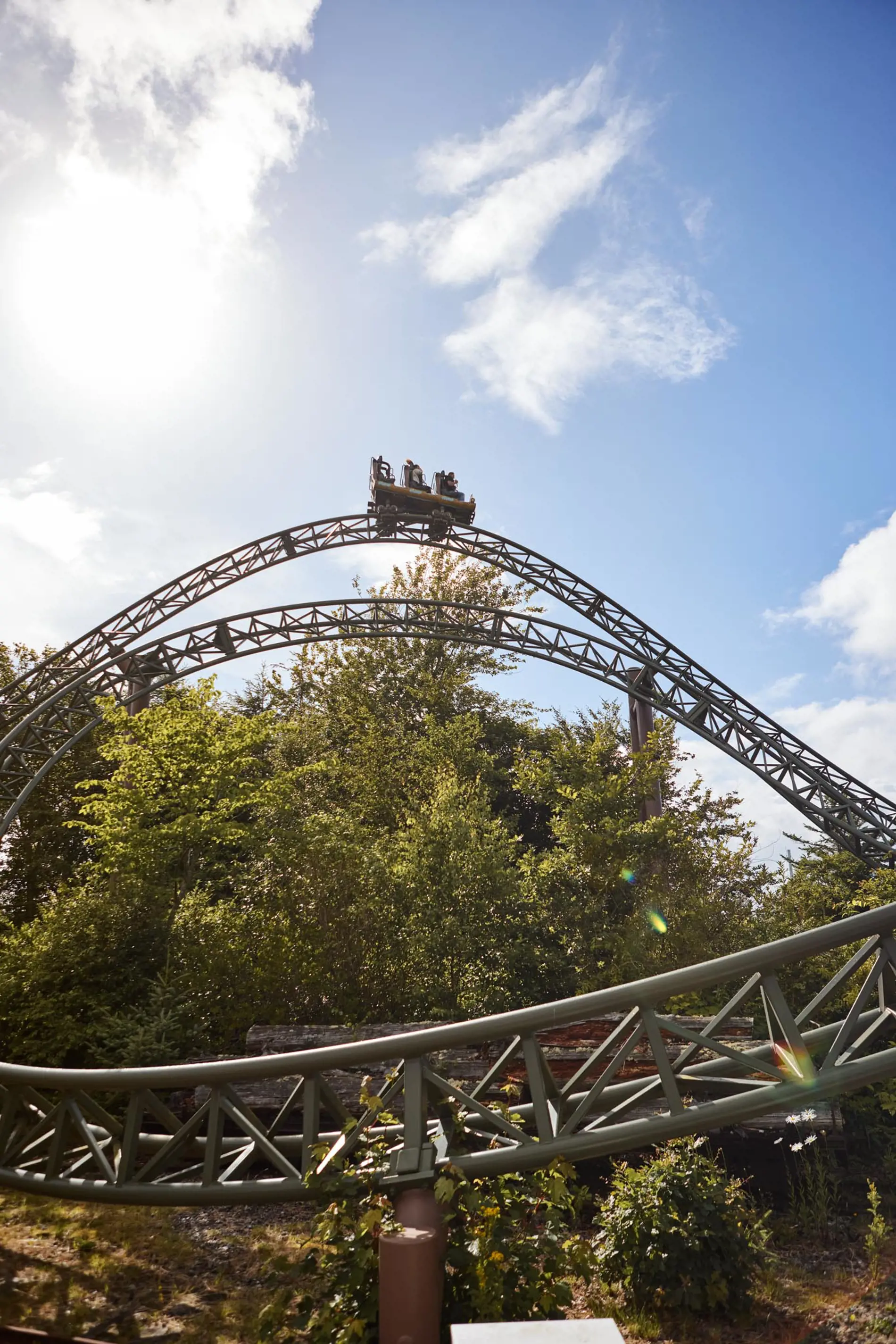 En udsigt, du desværre ikke har tid til at nyde, for turen går med det samme hastigt ned, susende rundt, på hovedet et kort øjeblik, drønende op og ender så endelig i den gamle stationsbygning igen. Puha, sikke en tur!