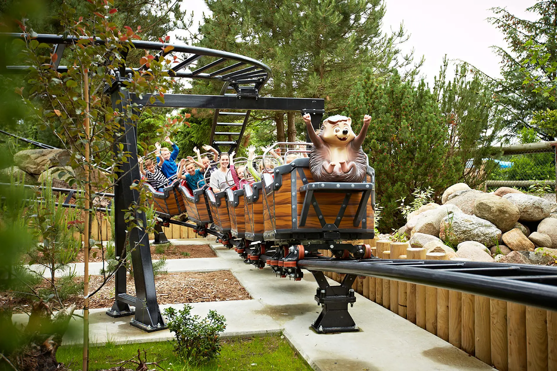"Ekstratur, ekstratur!" råbte han grinende - og lige siden har han slet ikke været til at hive væk fra rutsjebanen. Men der er heldigvis plads til mange flere jublende børn i de små vogne, så du kan godt glæde dig til at prøve en tur (eller 10!) med én af vores nye bedste venner i vores rutsjebane, Pindsvinet. Er du klar? Så hop ind!