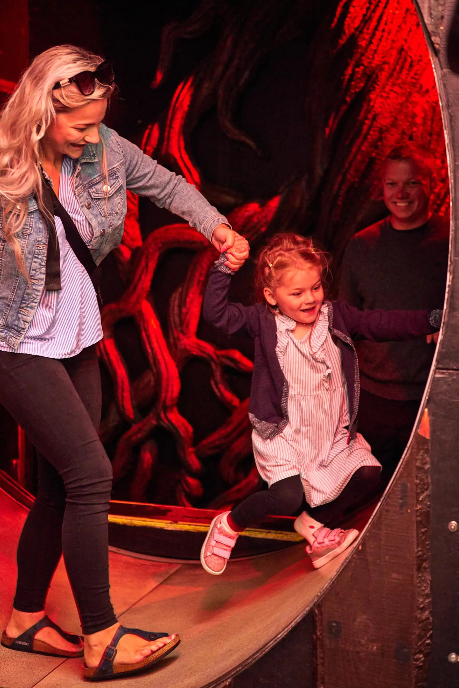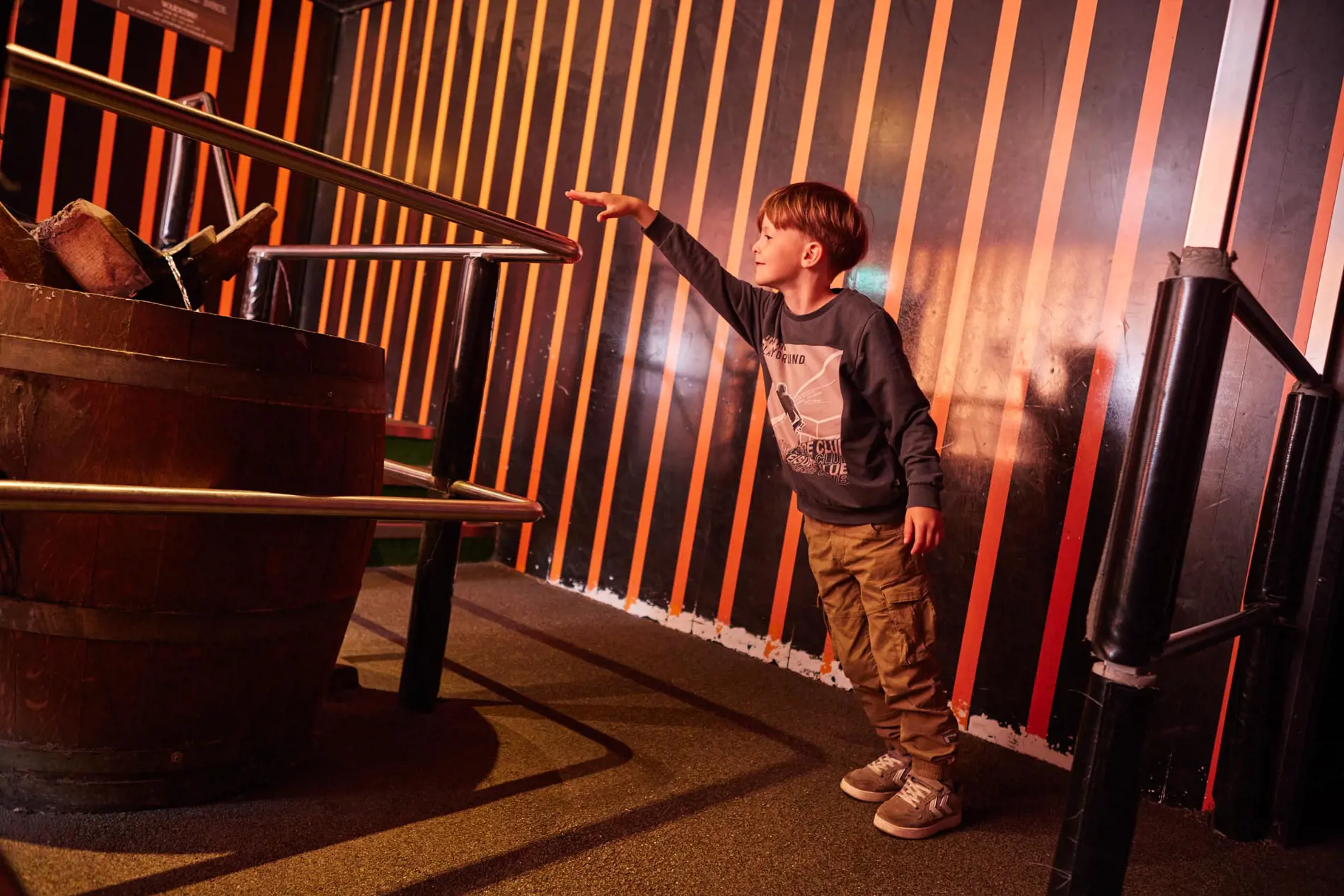 Når du først har vovet dig ind i Rævens Hule, går det op og ned og frem og tilbage, inden du svimmel, forpustet og med et stort grin ender i det skæve rum. Det er det rene hurlumhej!