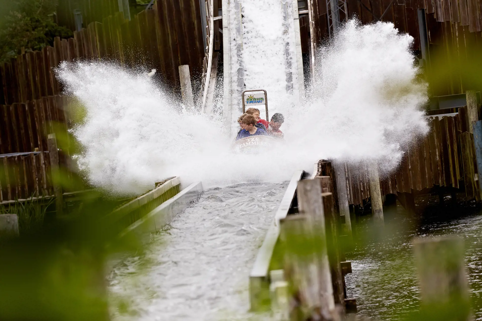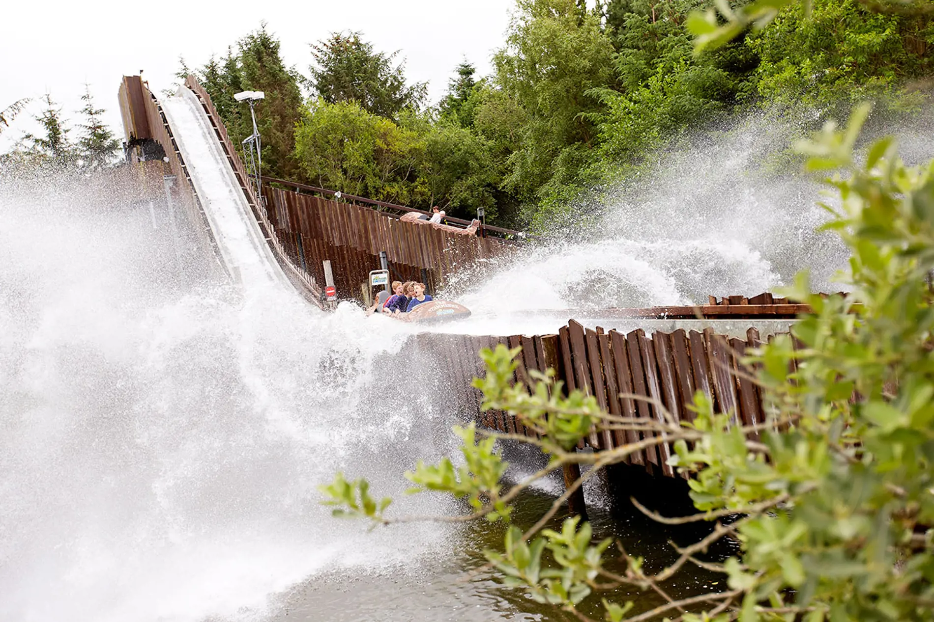 Wooow! Vandet sprøjter ud til alle sider, når den udhulede træstamme drøner ned ad vandfaldet og ender plaskhamrende vådt lige midt i søen. Der er garanti for sus i maven og masser af vandsprøjt! Huskede du at smile til kameraet?