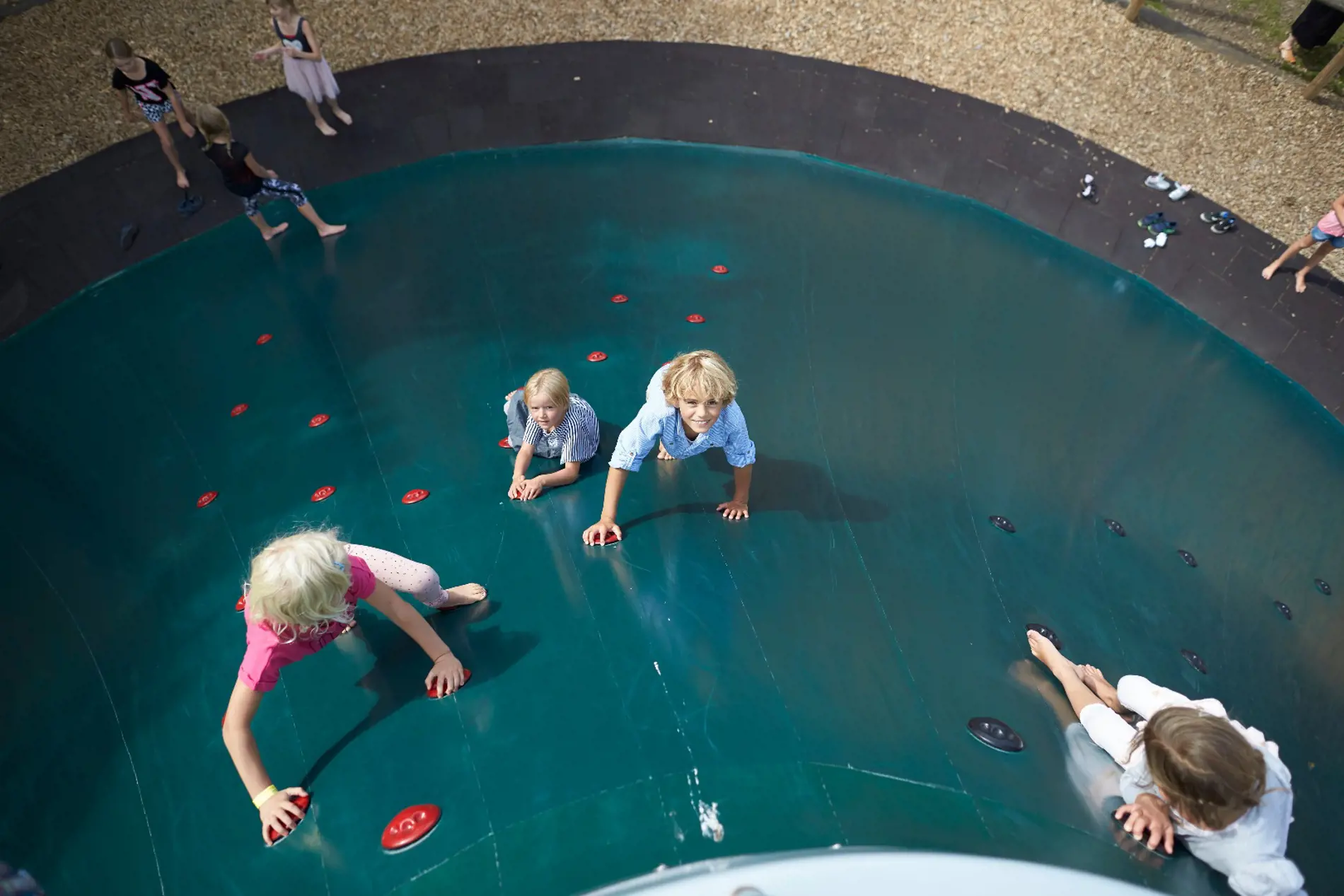 Vulkanen i Fårup sprudler ikke med røg og lava, men med klukkende glade børn og forsigtige forældre. De løber, springer og kravler op af den glatte og stejle vulkan - og selvom det ser svært ud, kan det faktisk godt lade sig gøre at komme helt til tops.
